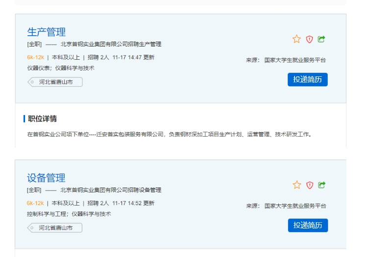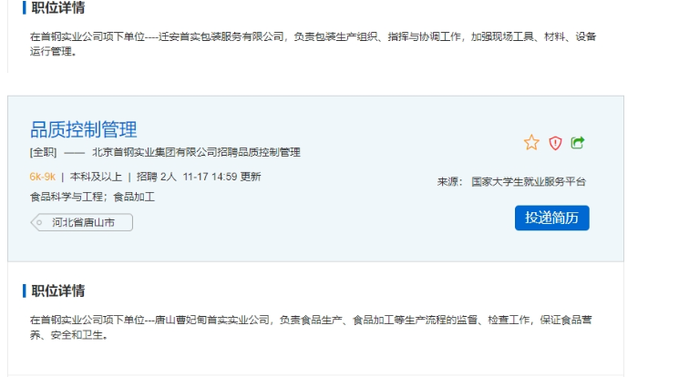 国企唐山岗位,北京首钢实业集团有限公司招聘
