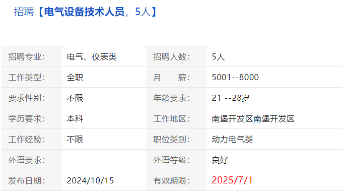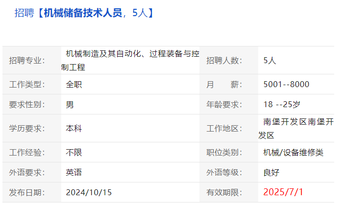 学历要求:全日制一批本科及以上学历,机械制造及其自动化、过程装配与控制工程等相关专业。