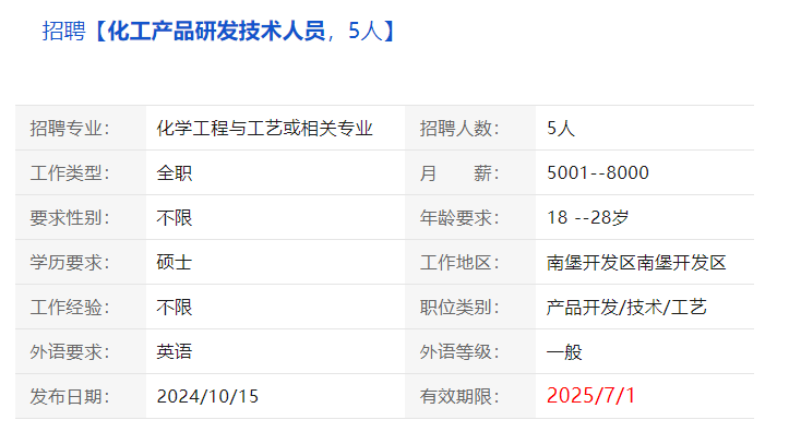 学历要求:全日制一批本科或研究生学历,化学工程与工艺、高分子材料与工程、应用化学、纺织技术等相关专业,学习能力强,专业基础扎实。